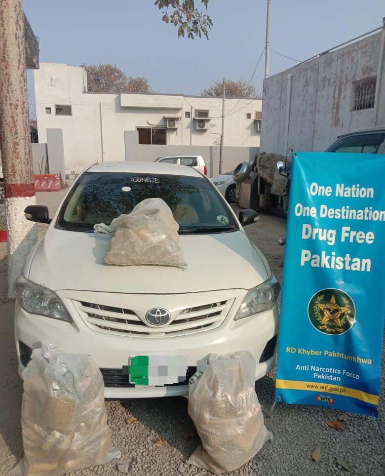 حیات آباد ٹول پلازہ رنگ روڈ پشاور کے قریب کار کے خفیہ خانوں سے 72 کلو گرام چرس اور 9.6 کلو گرام افیون برآمد۔