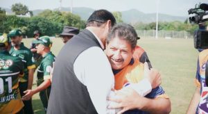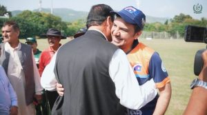 قبل ازیں گراؤنڈ پہنچنے پر وفاقی وزیر کا پرتپاک استقبال کیا گیا۔ انہوں نے دونوں ٹیموں کے کھلاڑیوں سے ملاقات کی۔