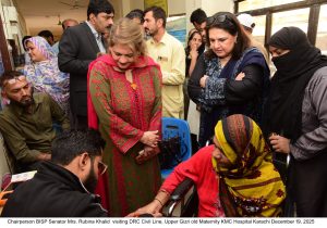 کراچی، 19 دسمبر 2025 — چیئرپرسن بینظیر انکم سپورٹ پروگرام (بی آئی ایس پی)، سینیٹر روبینہ خالد نے آج کراچی کے سول لائن گزری میں واقع بی آئی ایس پی ڈائنامک رجسٹری سینٹر کا دورہ کیا اور مستحق خواتین کے سوشل پروٹیکشن والٹس کے لیے مفت سموں کی فراہمی کے عمل کا تفصیلی جائزہ لیا۔ یہ اقدام صدرِ پاکستان اور وزیراعظم کی خصوصی ہدایات