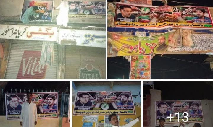 پارٹی کے سید عظیم شاہ کامریڈ بہرام گورشانی کامریڈ دلبر گورشانی لیاقت ناز ودیگر سرگرم کارکنانوں کی جانب سے مختلف مقامات پر بینرز آویزاں کیے گئے۔