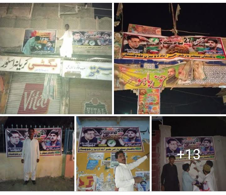 پارٹی کے سید عظیم شاہ کامریڈ بہرام گورشانی کامریڈ دلبر گورشانی لیاقت ناز ودیگر سرگرم کارکنانوں کی جانب سے مختلف مقامات پر بینرز آویزاں کیے گئے۔