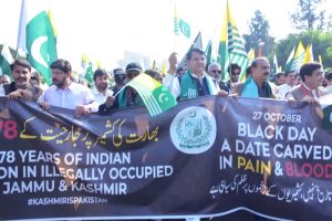 یہ بات انہوں نے یومِ سیاہ کشمیر کے موقع پر حریت رہنماؤں کے ہمراہ ریلی اور مرکزی تقریب سے خطاب کرتے ہوئے کہی۔
